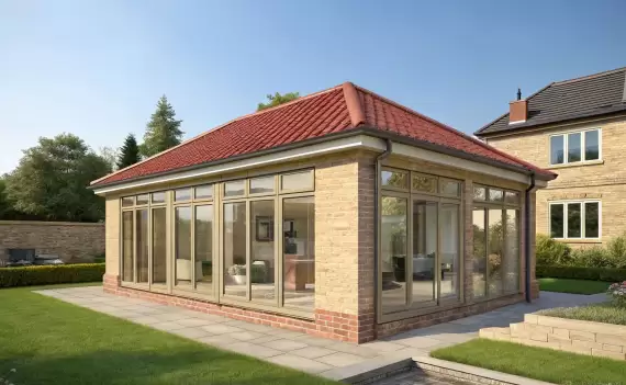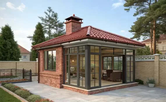 Современное остекление кирпичной беседки
