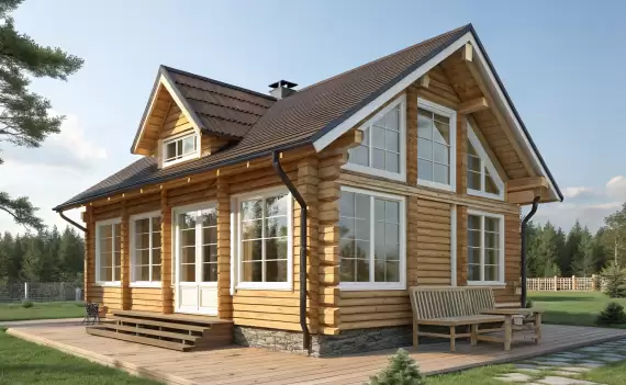 Элитное остекление бревенчатого дома профилем REHAU GENEO