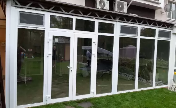 В деревне Таширово (Наро-Фоминский район, МО) реализовано тёплое остекление зимнего сада с использованием белого ПВХ-профиля Rehau и фурнитуры Roto NX. Установлено 14 конструкций, включая поворотно-откидные окна, глухие панели и остеклённые двери. Все элементы выполнены в белом цвете, без ламинации. Монтаж сопровождался полной герметизацией и установкой подставочных профилей.
