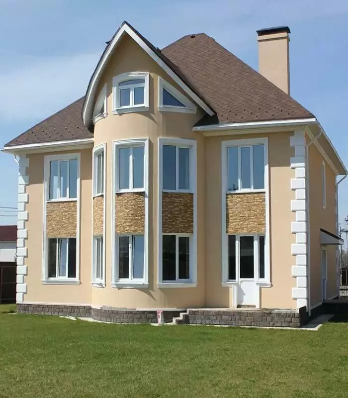 Стоит помнить, что монтаж окон в частных домах имеет несколько особенностей. Так установка окон ПВХ в деревянном доме производится не в оконные проём, а в обсадную коробку. Большие пластиковые конструкции тяжёлые по весу, поэтому если место, где они будут устанавливаться имеет непрочный фундамент, стоит сначала укрепить его. Из профиля ПВХ можно изготовить окна любой формы: круг, треугольник, трапеция и не только. Для домов с определённым дизайном могут понадобиться цветные окна. Для этого профиль ПВХ ламинируется в выбранный из палитры цвет.